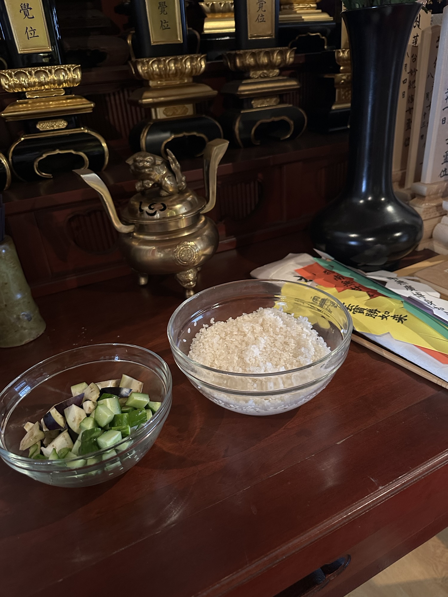 施餓鬼棚 2025 9/20 日々のこと 2025年9月20日 きゅうり、ナス、お米の準備 飢えと渇きに苦しむ餓鬼と、誰にも供養されない無縁仏に食べ物や飲み物など施しを行います 日々のこと よかったらシェアしてね! URLをコピーしました! URLをコピーしました! 施餓鬼 施餓鬼法要 関連記事 朝ヨガ 2026年2月14日 涅槃会(ねはんえ) 2026年2月13日 雪 2026年2月10日 おひなさま 2026年2月4日 朝ヨガ 2026年1月24日 正月準備 2025年12月30日 境内の花 2025年11月24日 彼岸花 2025年9月25日